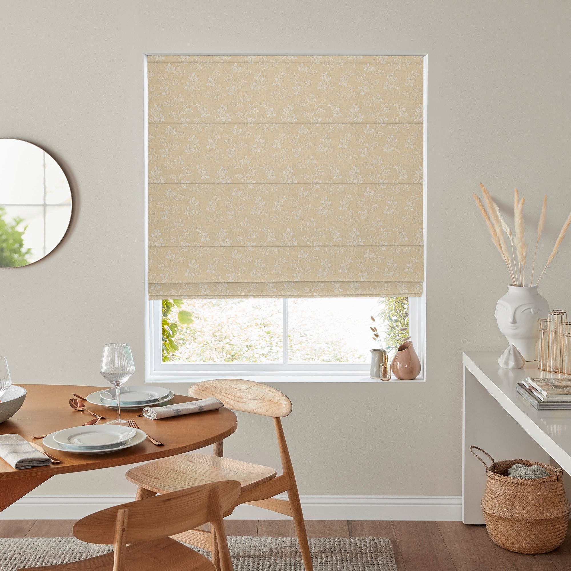 Brighten your space with the Truly Lemon Roman Blind, a charming window solution that brings cheerful warmth to any room. Featuring a delicate floral pattern in soft lemon tones, this blind strikes the perfect balance between visual interest and neutral sophistication. The gentle botanical design complements a wide range of décor styles, from country cottages to modern homes. The structured Roman fold creates clean, tailored lines when raised, while the warm lemon hues add a subtle glow to your windows. Ideal for kitchens, dining areas, or bedrooms, this blind offers both style and practicality. Enjoy a window treatment that feels both inviting and effortlessly elegant.